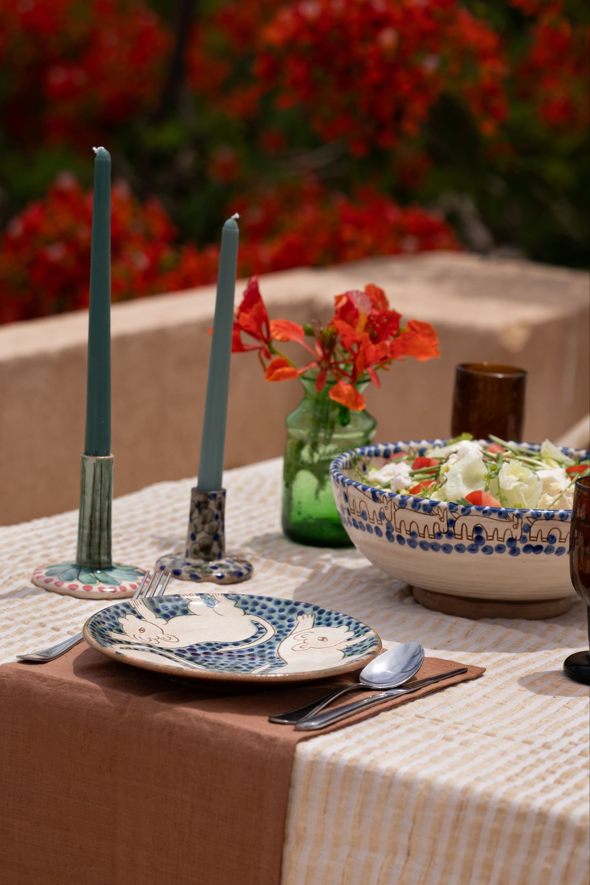 Dense with Bougainvillea blossoms, palm trees and domed adobe rooftops, Tunis is a picturesque village that sits between Lake Qaroun and the desert dunes of the Fayoum Oasis. In the 1980’s, Swiss ceramic artist Evelyn Porret introduced the village children to handicrafts when she founded a pottery school. Using clay from the Nile banks of Aswan, its graduates have become Tunis’s master potters who give the village and its pottery a unique aesthetic and style, adorning the pieces with primitive motifs from the flora and fauna of their surroundings; an identity that cannot be found anywhere else in the world.