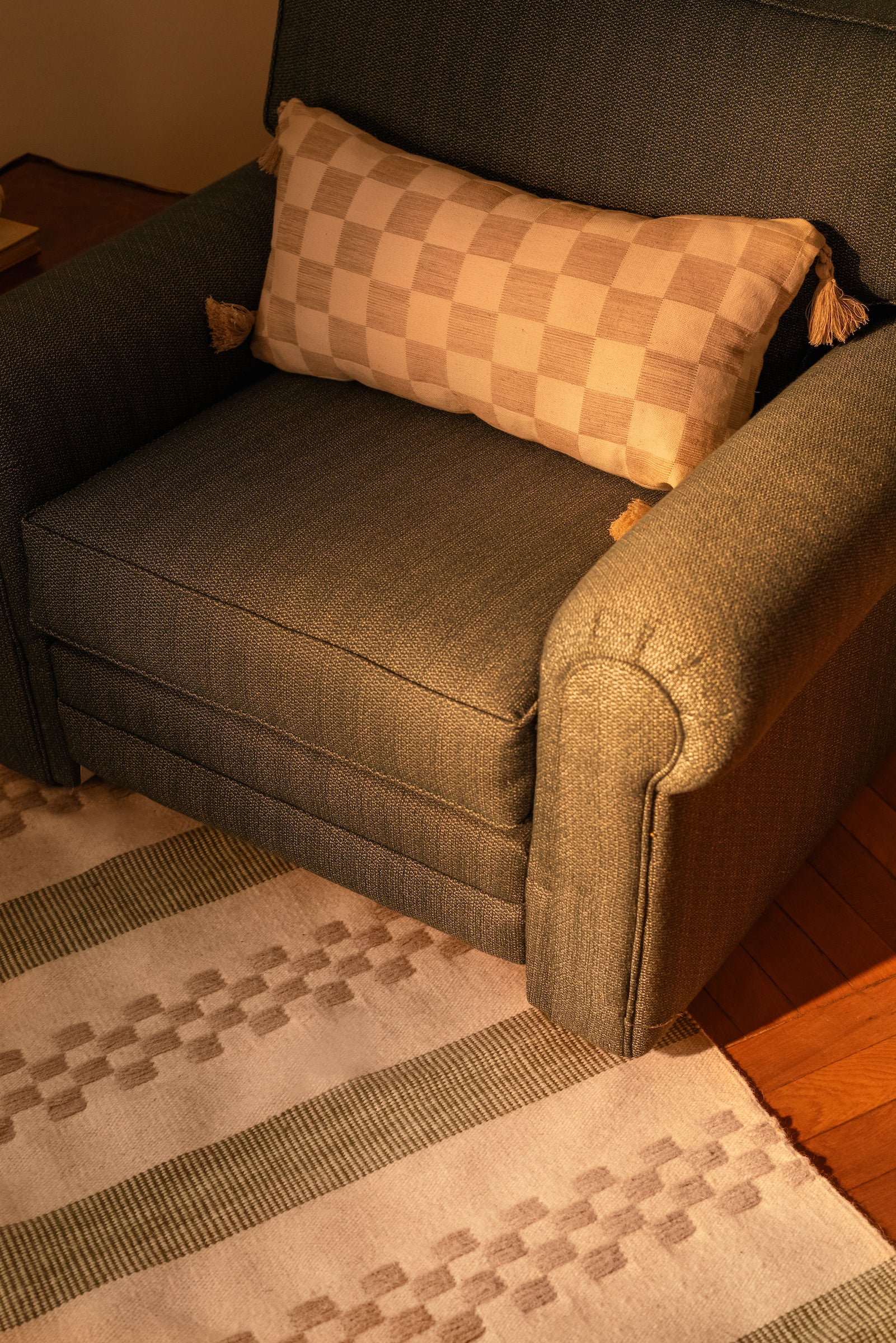 Rooted in the brick patterns of Cairo’s streets and courtyards, The Masonry Collection transforms architectural rhythm into woven texture. Handcrafted in wool and finished in warm neutrals, each kilim rug carries the calm, grounded spirit of Cairene earth and design.